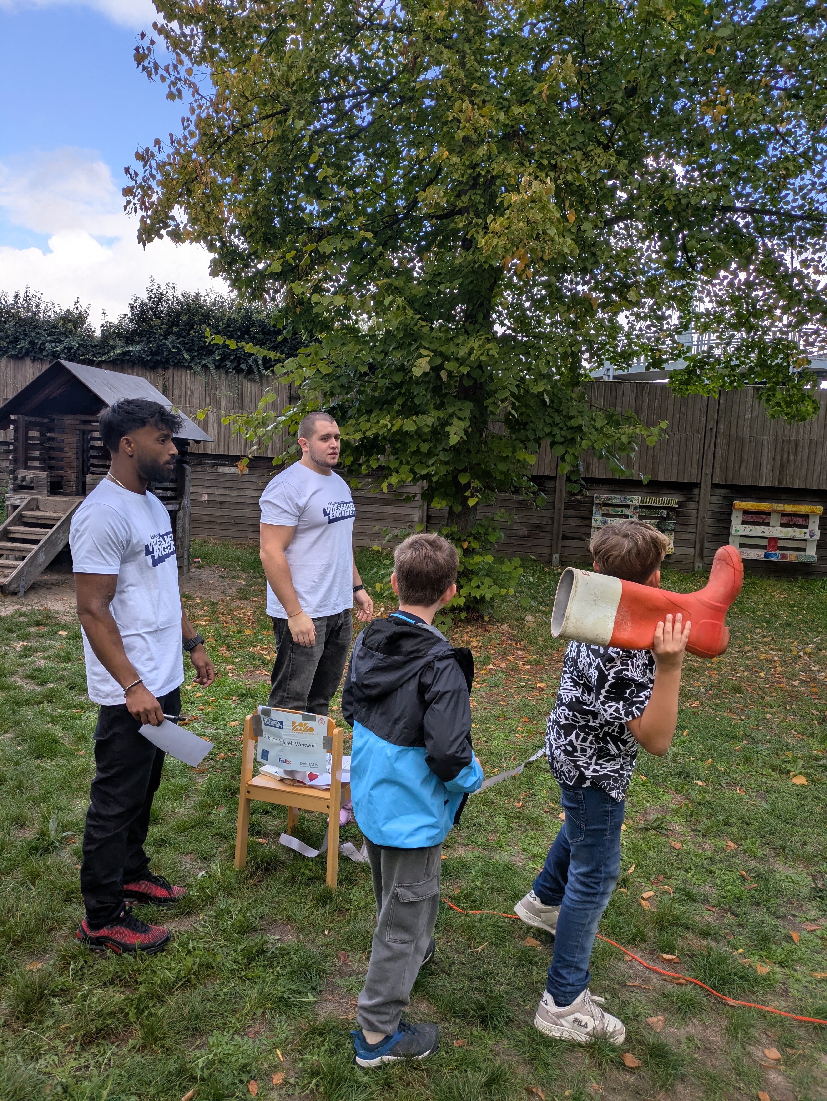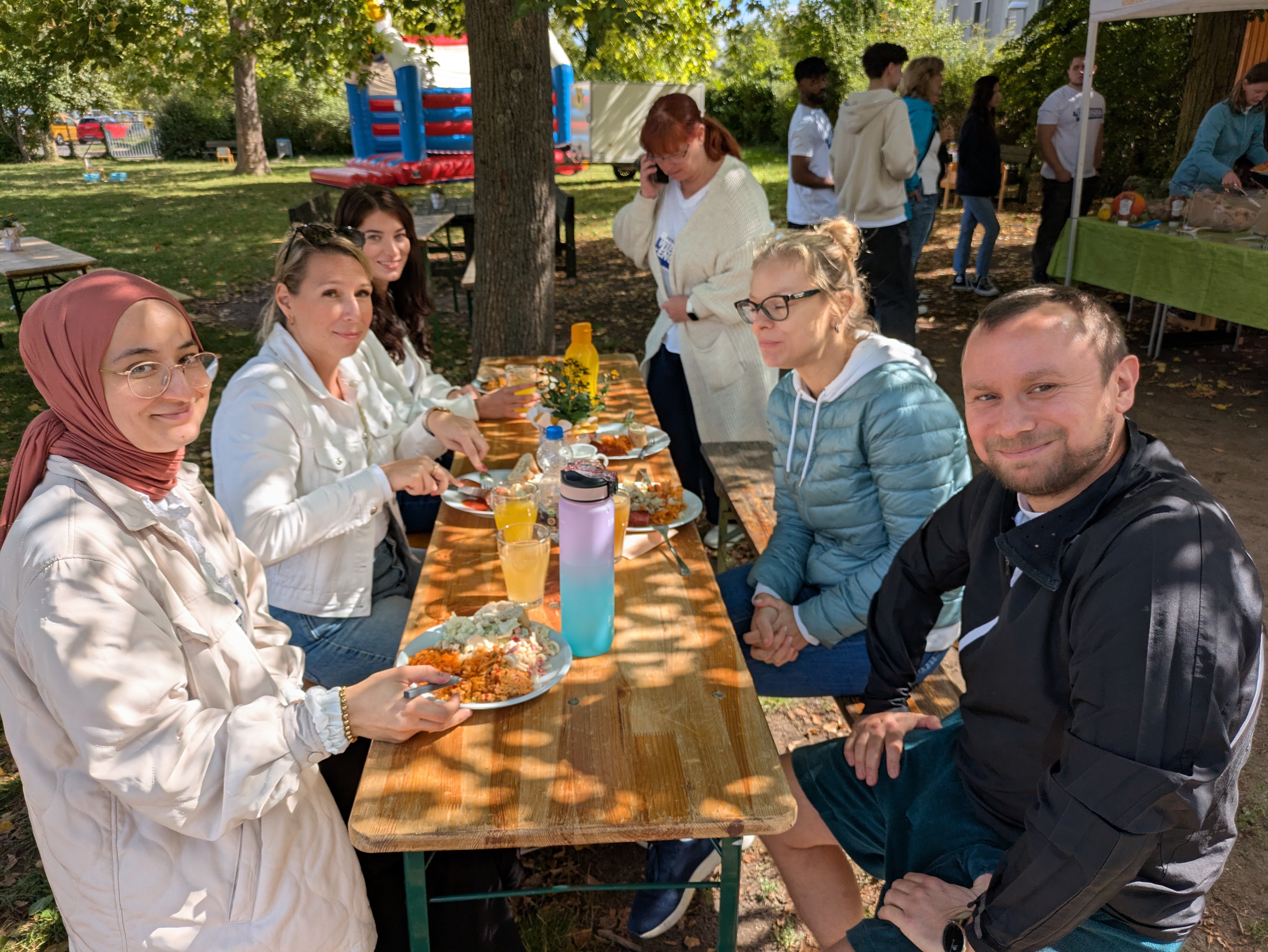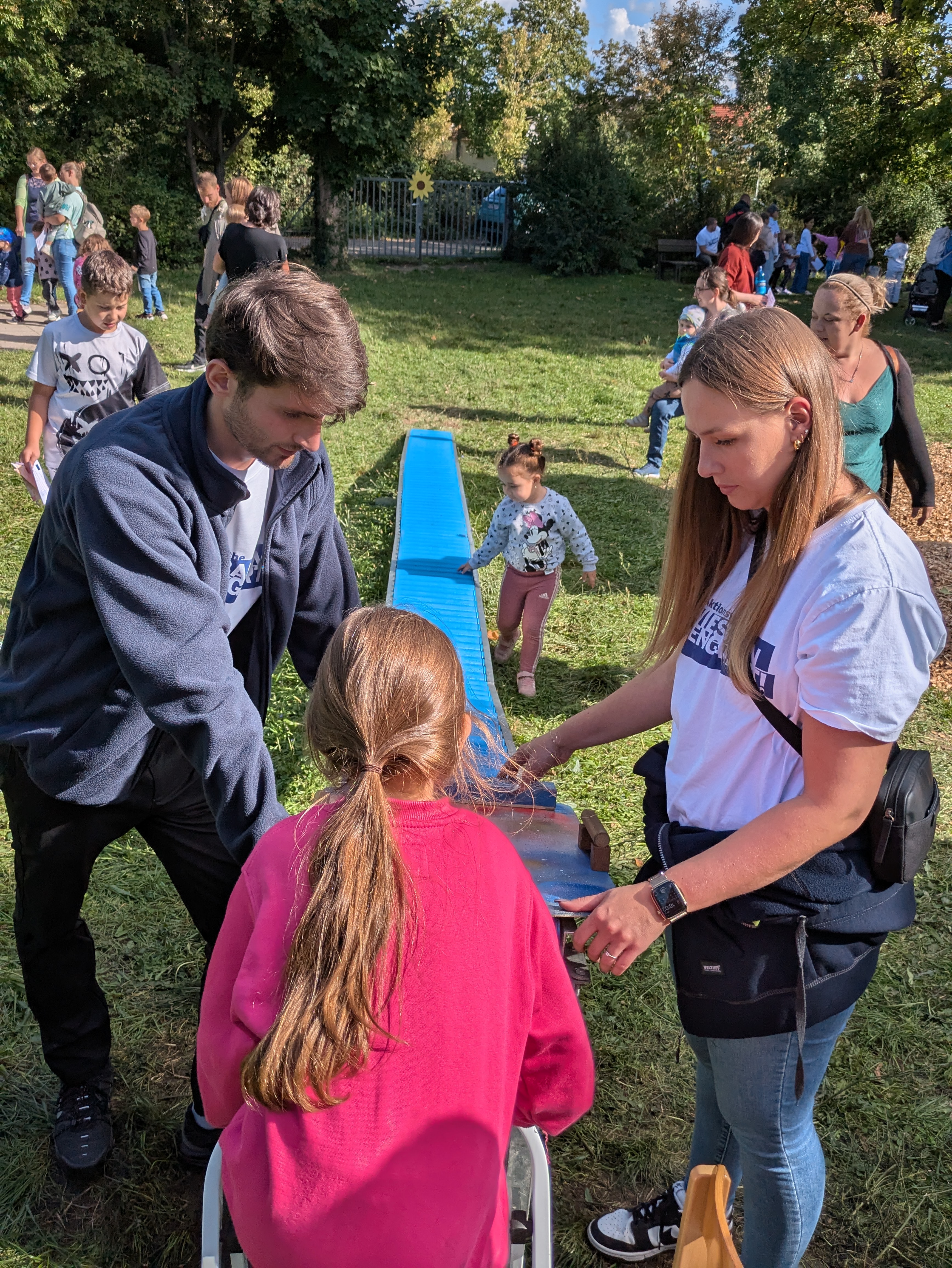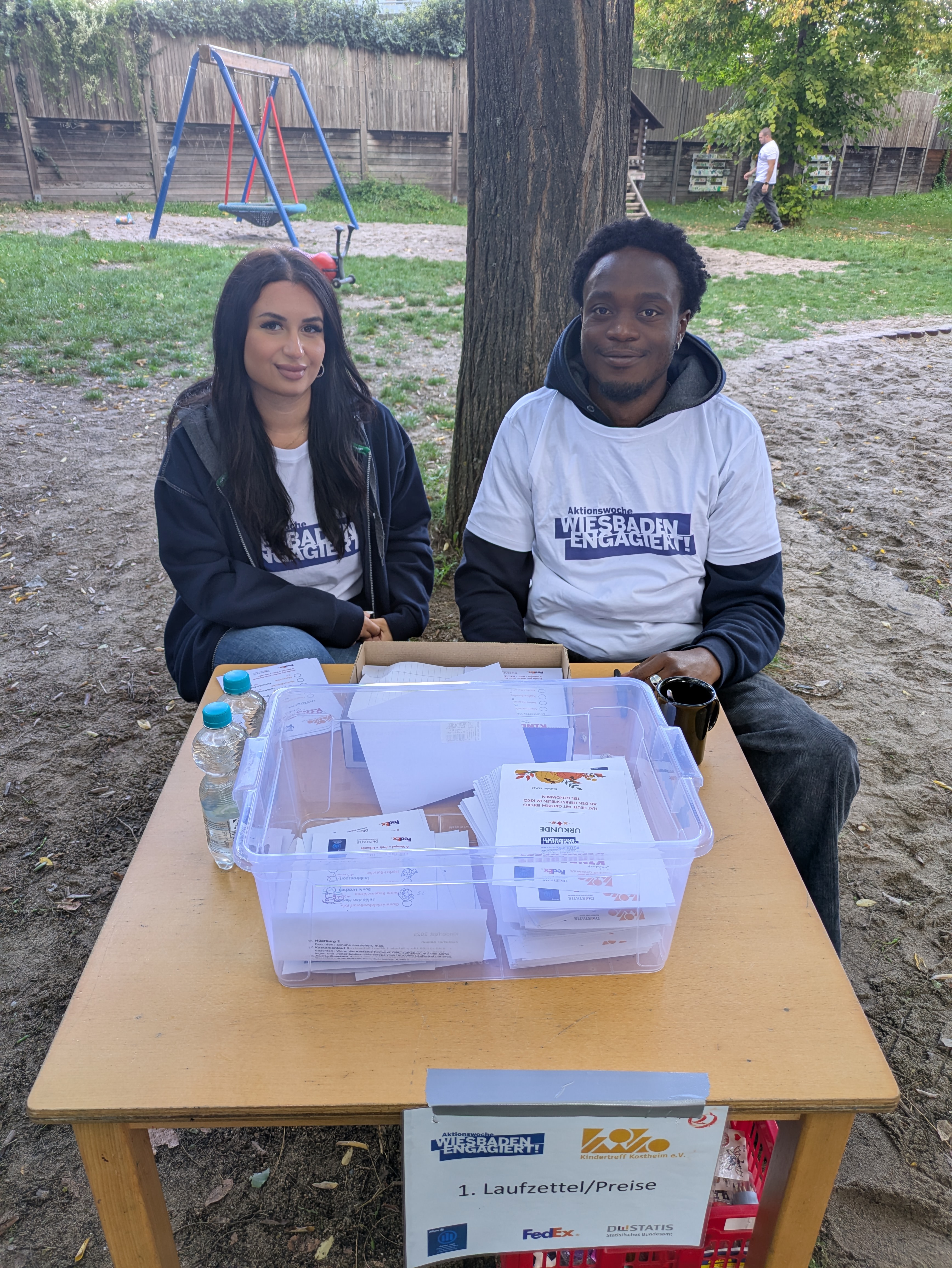 Auch dieses Jahr konnten wir einige engagierte Mitarbeiter und Mitarbeiterinnen aus drei Wiesbadener Unternehmen für uns gewinnen. Die treuen Azubis von Fedex Express sowie motivierte Mitarbeiterinnen und Mitarbeiter des Statistischen Bundesamtes waren bei diesem großen Familienfest an den Spielstationen unterstützend tätig und haben einen Einblick bekommen, wie viel Spaß freizeitpädagogische Arbeit mit Kindern macht. Auch Nadia von der Allianz Agentur MZ-Kostheim blieb dem KiKo treu und bereitete zusammen mit Kerstin die Spielstationen vor und zauberte zusammen mit Anke für alle Engagierte ein leckeres Mittagessen.