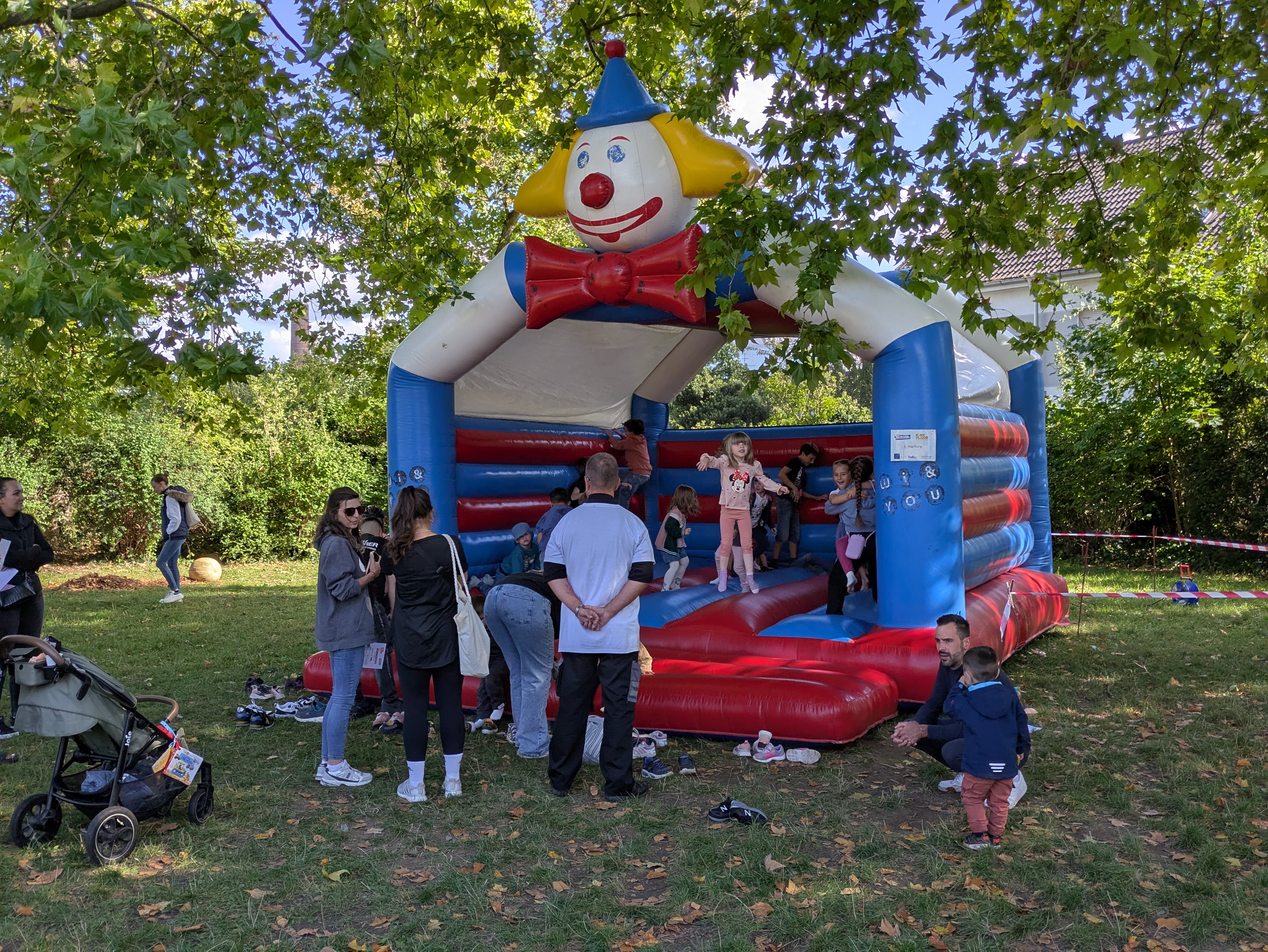 Neben den Spielstationen gab es am Nachmittag eine Hüpfburg, auf der sich alle so richtig austoben konnten und die uns das Jugendzentrum Reduit freundlicherweise wieder ausgeliehen hat. Eine Kaffee- und Kuchentheke mit tollen gespendeten Köstlichkeiten sowie Süßigkeiten und Slush-Eis von Helmut durften auch dieses Jahr nicht fehlen.
