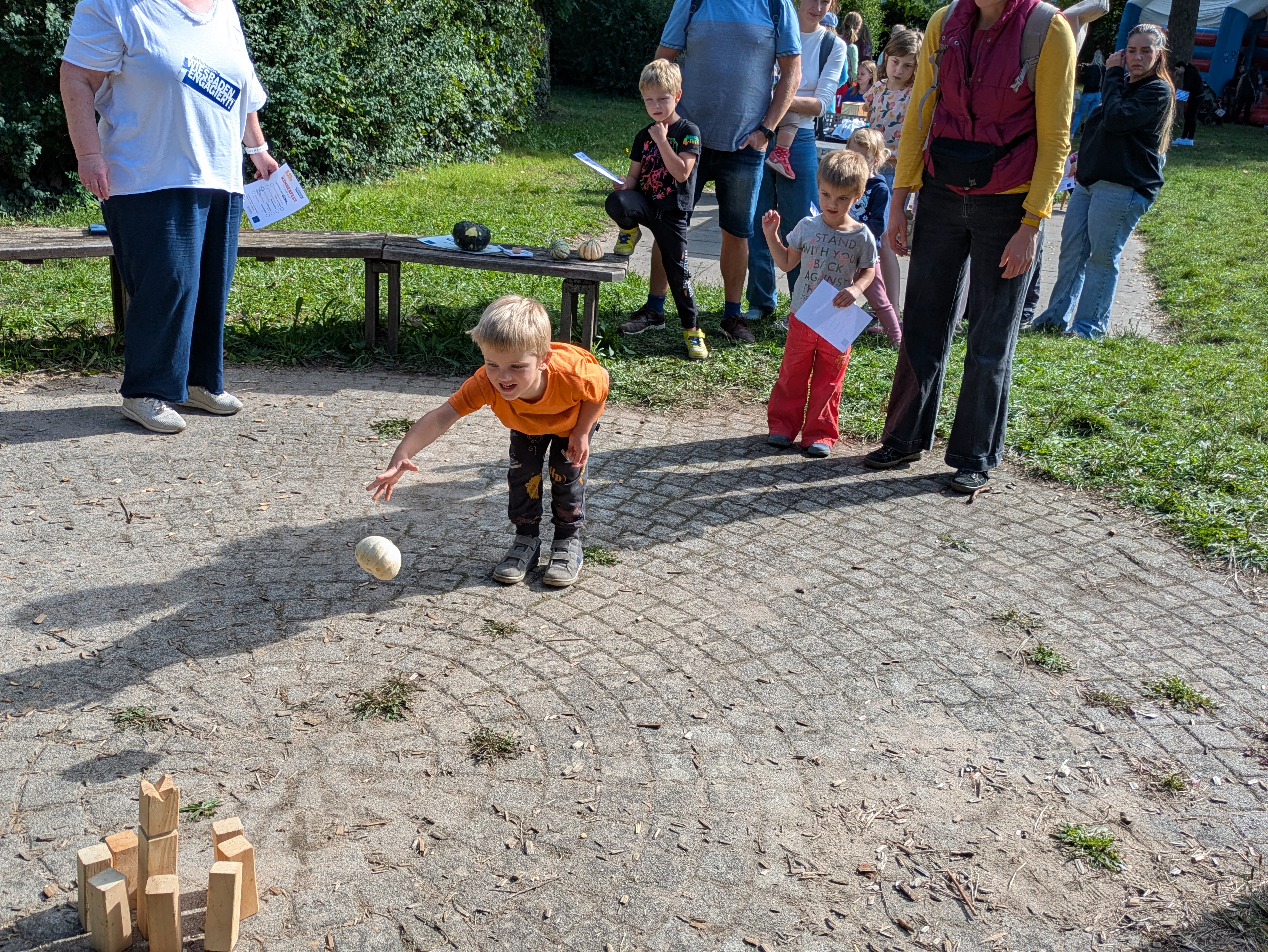 Die ViertklässlerInnen der Carlo-Mierendorff-Schule, Albert-Schweizer-Schule und Brüder-Grimm-Schule durchliefen bereits am Vormittag mit einem Laufzettel die Stationen. Kastanienlauf, Gummistiefelweitwurf, Kürbis-Bowling und viele andere Stationen begeisterten die Kinder und mit 6 von 11 Stationsstempeln bekamen die Kinder eine Urkunde und einen Preis überreicht.