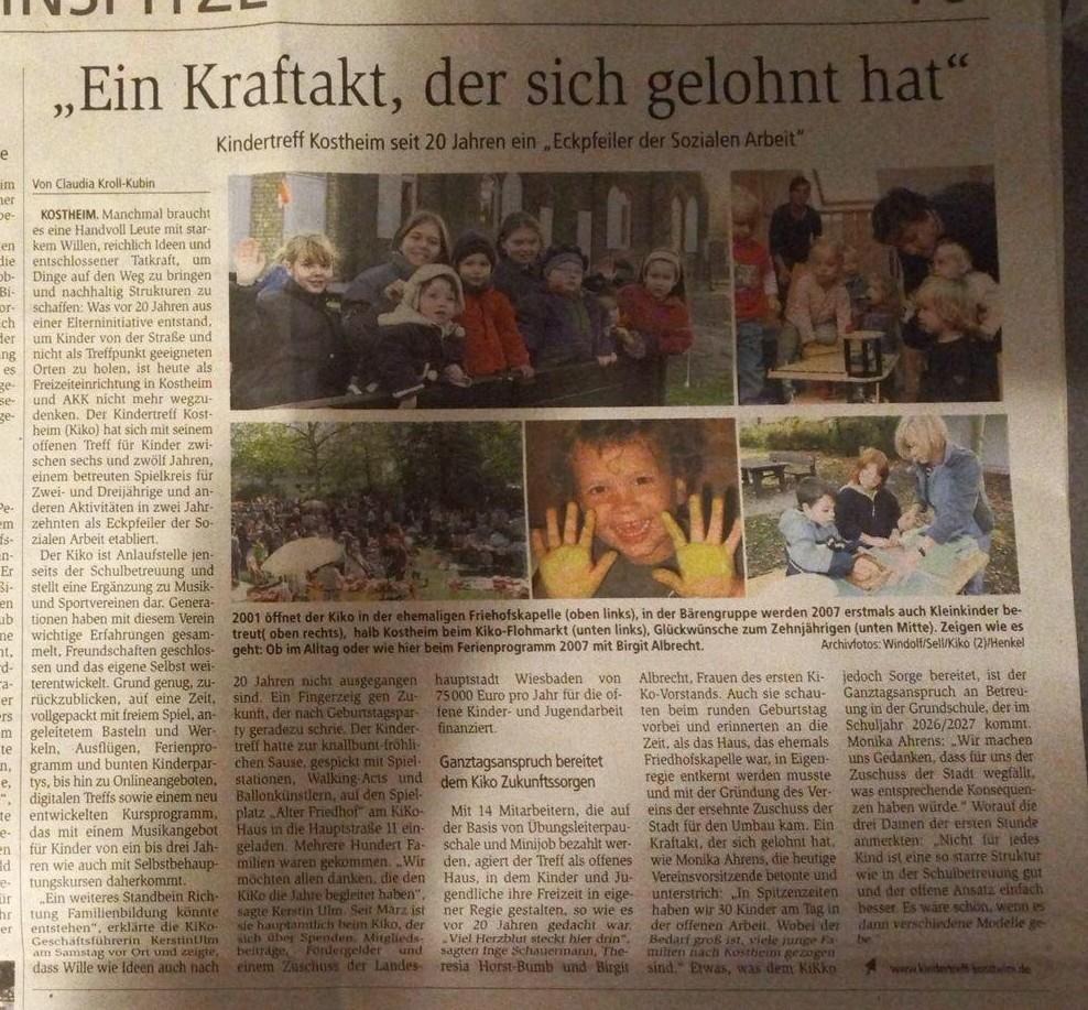 Sie hat sich viel Zeit genommen und einen gelungenen Artikel über die Idee "KiKo" und ihre Umsetzung in 20 Jahren geschrieben. Vielen Dank für die wohlwollende Berichterstattung!