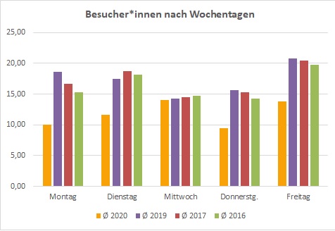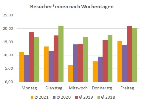 Bis zum März 2020 hielten wir an unserem bewährten strukturierten Angebot zu den Wochentagen fest: jeweils von 14:30 bis 18:00 Uhr, kostenfrei und bis auf die Werkstattangebote ohne Anmeldung.