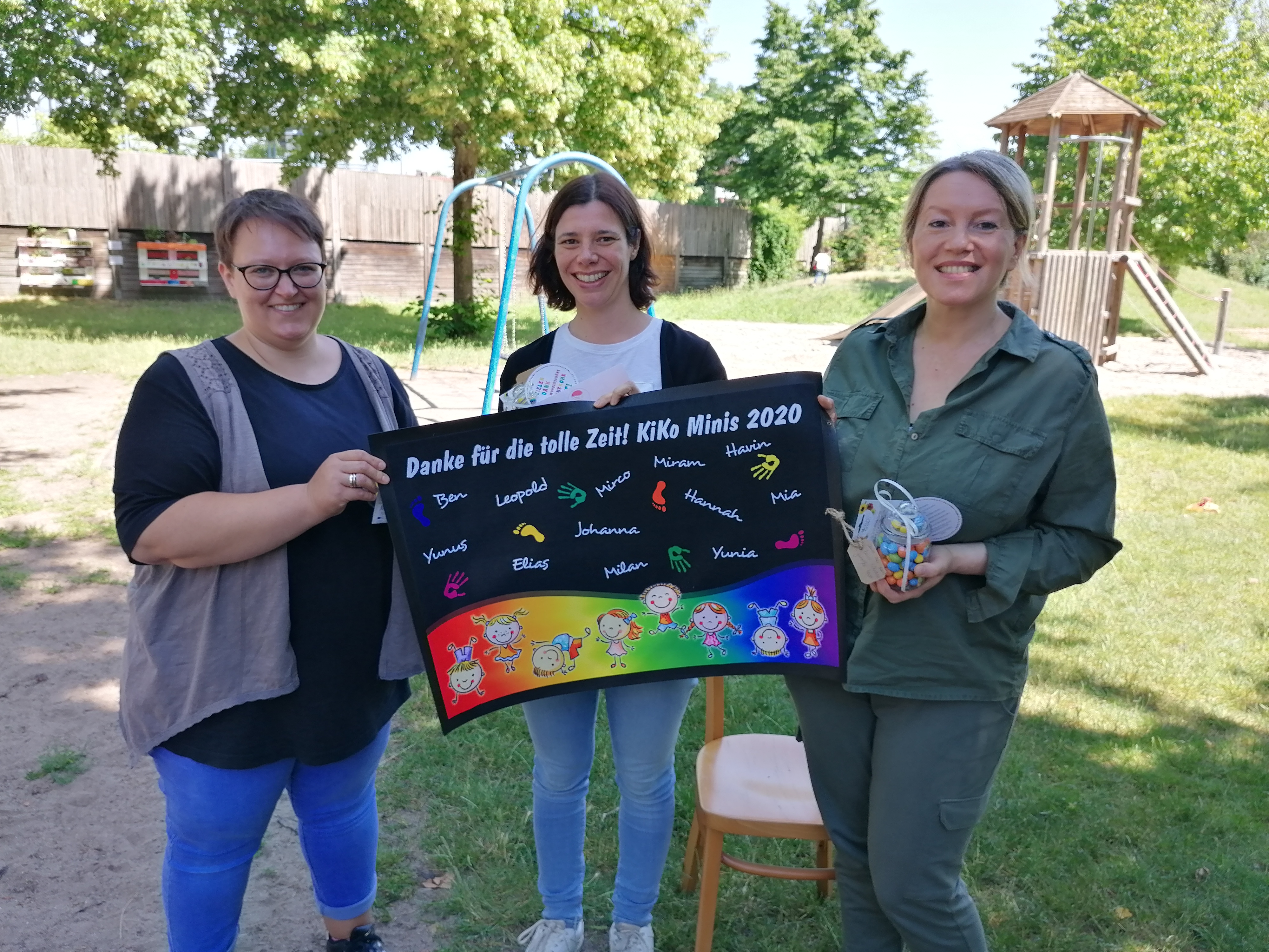 • Den Spielkreis-Betreuerinnen Selma Dizdarevic, Stephanie John und Patricia Neumann und Aushilfen Anna Loos, Nina Schworm, Julia Lakmann und Selma Altin für die engagierte Arbeit mit den KiKo Minis. Es ist schön zu sehen wie sie den Kindern mit Achtsamkeit, Respekt und Liebe begegnen und somit einen Ort der Geborgenheit schaffen.