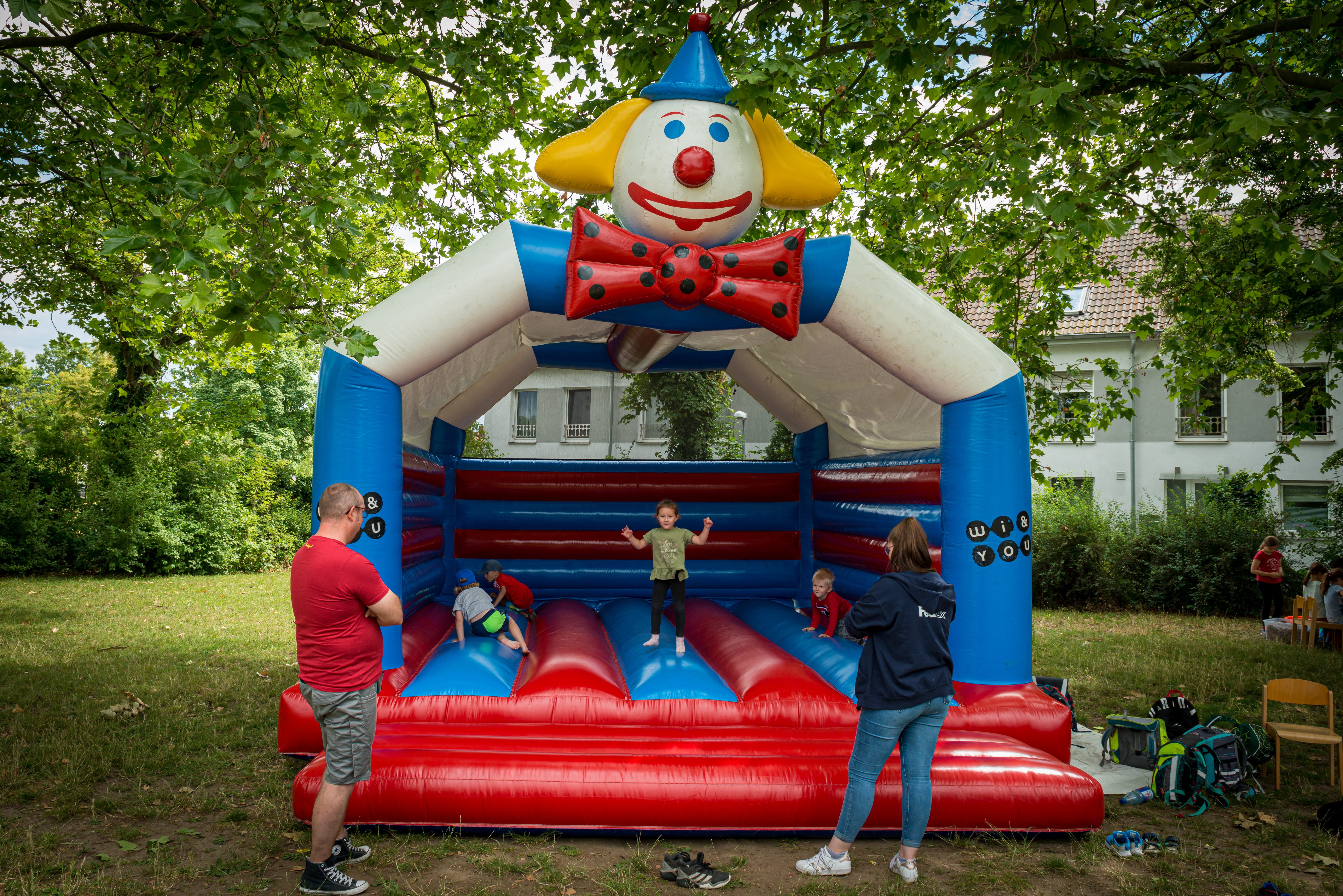 Am Vormittag durchliefen die vierten Klassen der Brüder-Grimm-Grundschule und der Carlo-Mierendorff-Grundschule den Spieleparcour und tobten sich auf der Hüpfburg aus, die wir von Peter aus dem Jugendzentrum der Reduit zur Ausleihe freundlicherweise geliefert bekamen. Bei vollster Stempelanzahl auf dem Laufzettel konnten sich die Kinder am Schluss über eine Urkunde und einen kleinen Preis, der durch eine Spende der Mainzer Stadtwerke finanziert werden konnte, freuen.