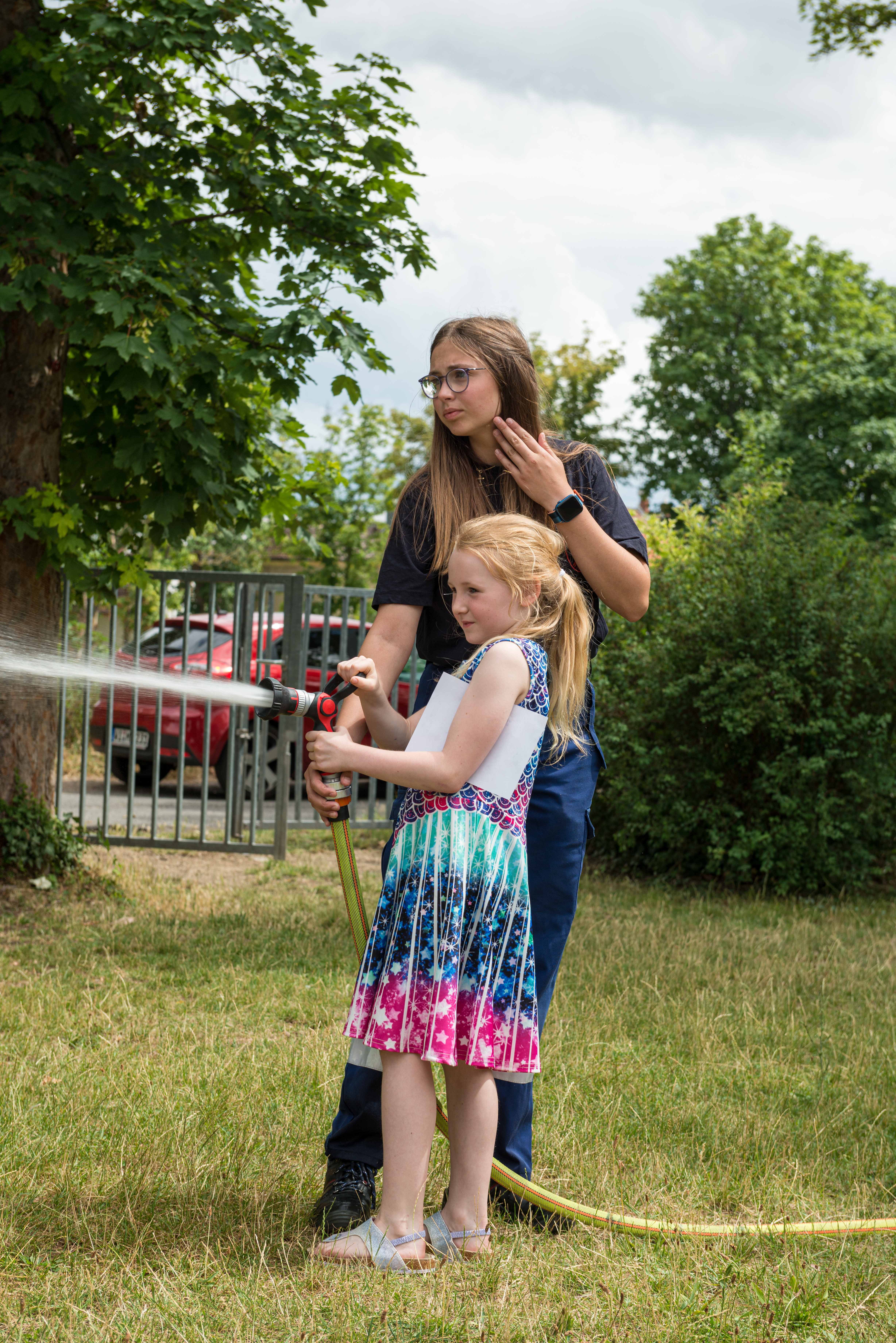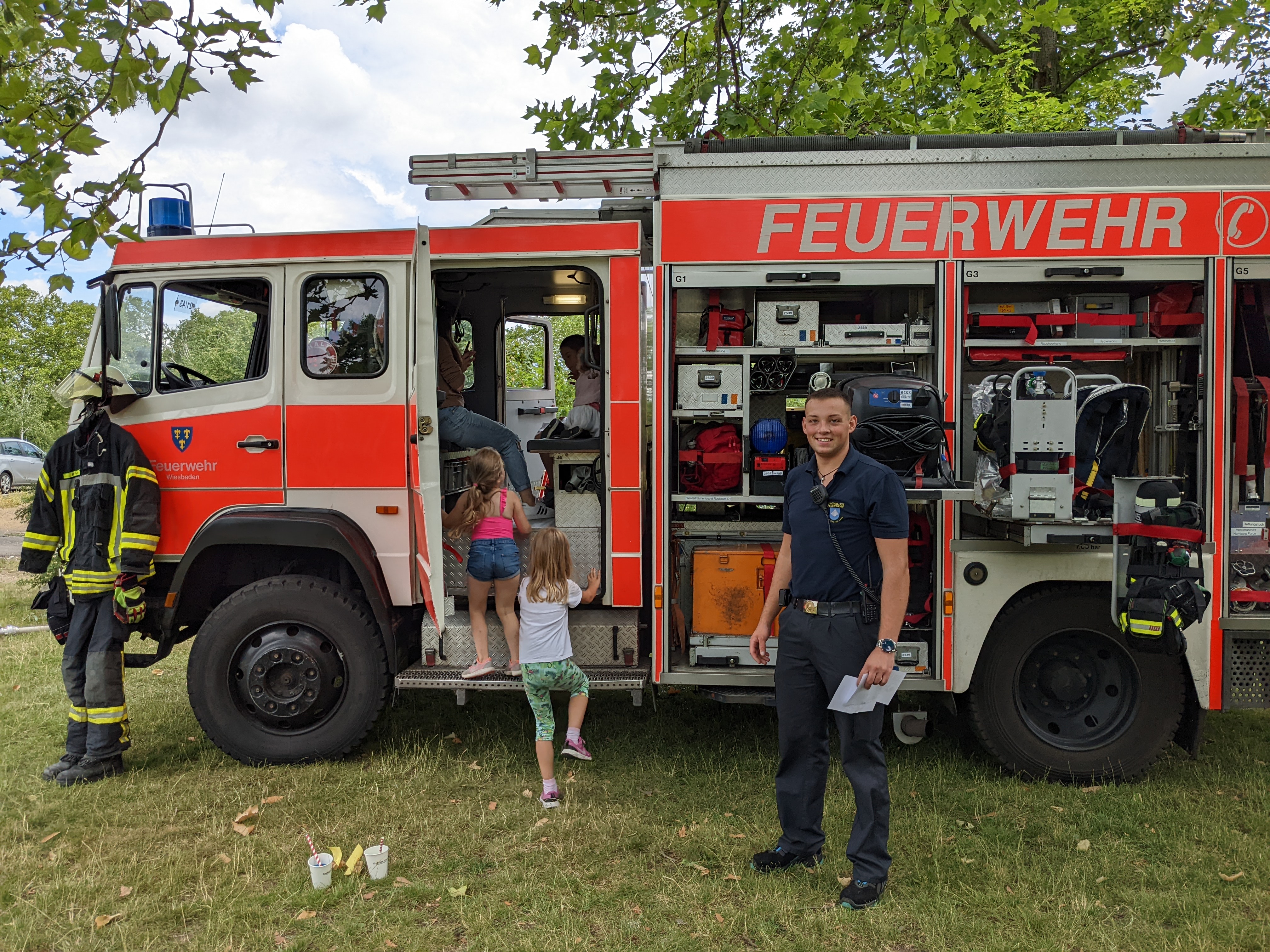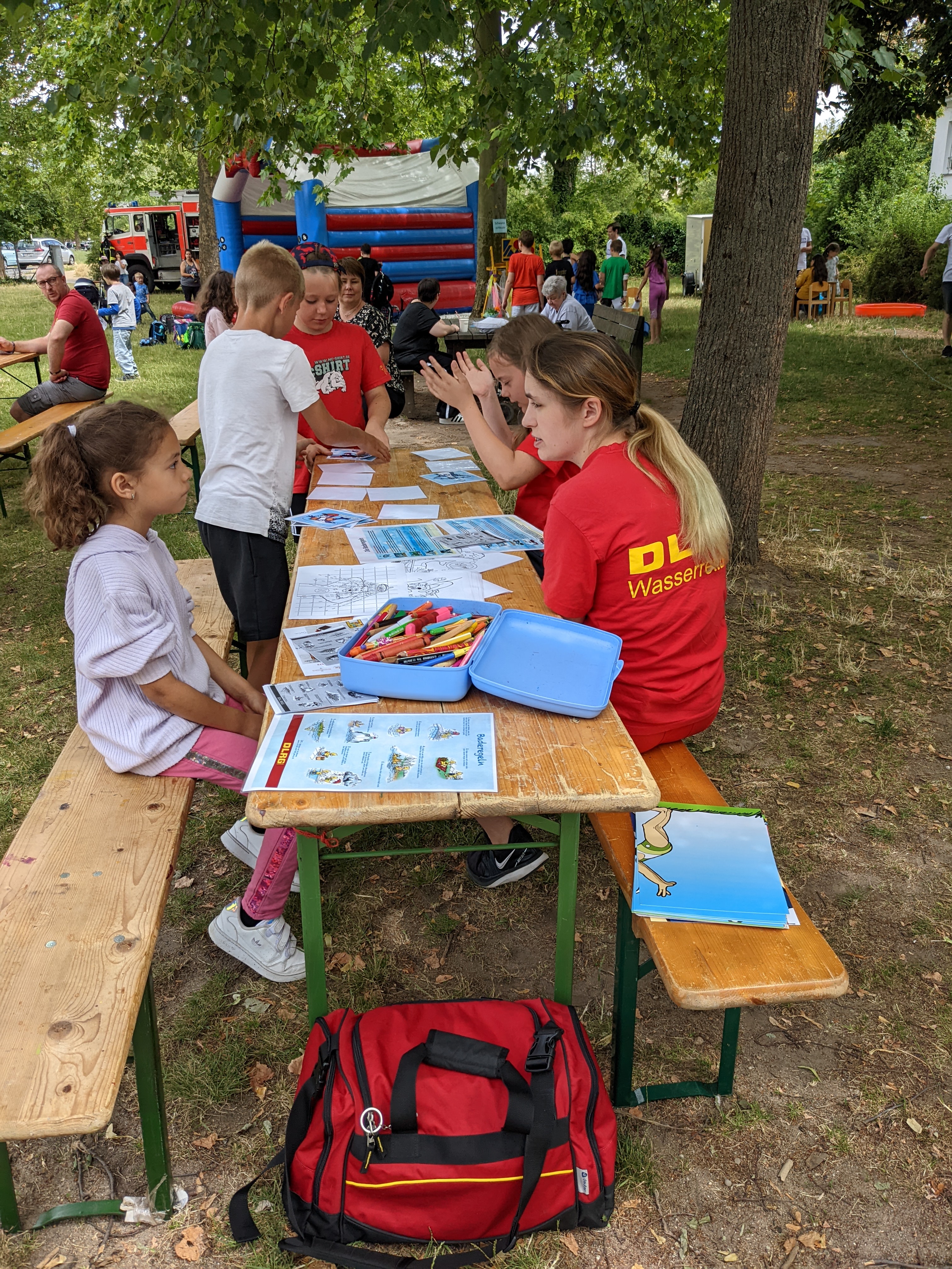 Außerdem war Matthias Kretz, Jugendwart der Kasteler Feuerwehr mit einem Einsatzfahrzeug und einer freiwilligen Helferin vor Ort um eine Spritzaktion anzubieten. Auch das Kasteler Jugendeinsatzteam der DLRG Kreisgruppe Rhein-Main beteiligte sich mit einer Baderegelstation und vier jungen HelferInnen.